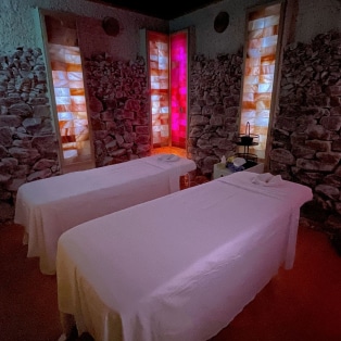 Our Couple Salt Room is perfect for both partners or friends and family who want to discover and enjoy our therapeutic treatments together. We offer hot stone massage, Reiki, sound healing, reflexology, head massage, and facial and body treatments. Surrounded by blocks of Himalayan salt and our signature ambient lighting.
